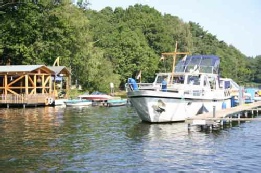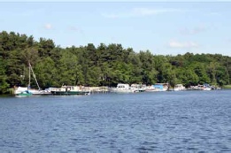 liegt am Nordufer des Hölzernen Sees in der Dubrow, einem herrlichen Seen- und Waldgebiet im Naturpark Dahme-Heideseen. Jeder Liegeplatz hat Stromversorgung mit eigenem Zähler und Trinkwassersäulen. Der Servicesteg ist Gästen vorbehalten. Hier befindet sich eine Fäkalienabsauganlage. Abends wird hier in geselliger Runde gerne Seemannsgarn gesponnen. Wer seekrank geworden ist und die reizvolle Gegend erkunden will, hat die Möglichkeit, sich Fahrräder auszuleihen. Auf dem anliegenden Campingplatz gibt es einen großen Strand, eine Gaststätte, einen Minishop, Duschen und WC. Gleich nebenan auf dem Köriser See befindet sich eine Wasserskistrecke und wer die Vogelperspektive liebt, kann sich dort von